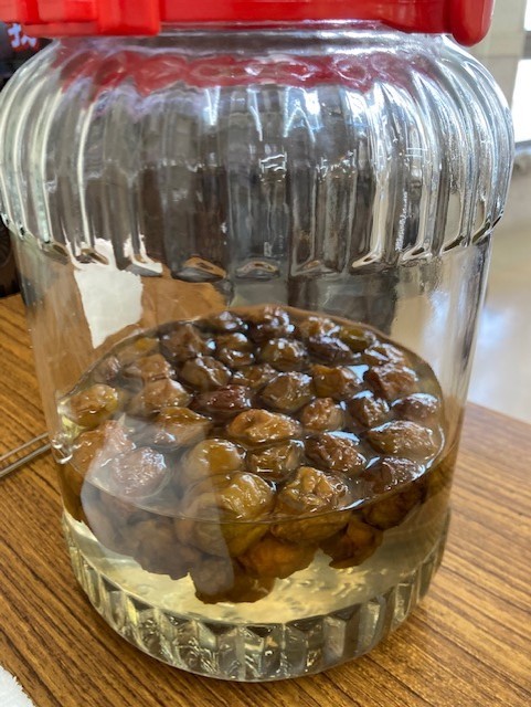 最初こんなに丸々した梅だったんですね~表面はつるんとして硬かったんです~