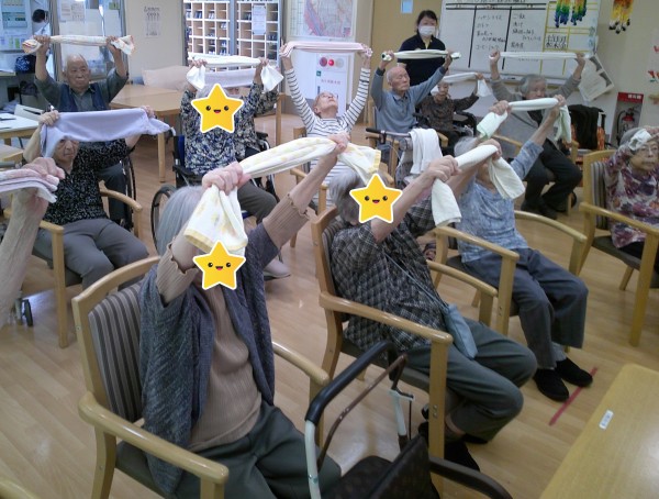 昨日、リモートの体操があり、今回は1階の食堂に集まってもらい、