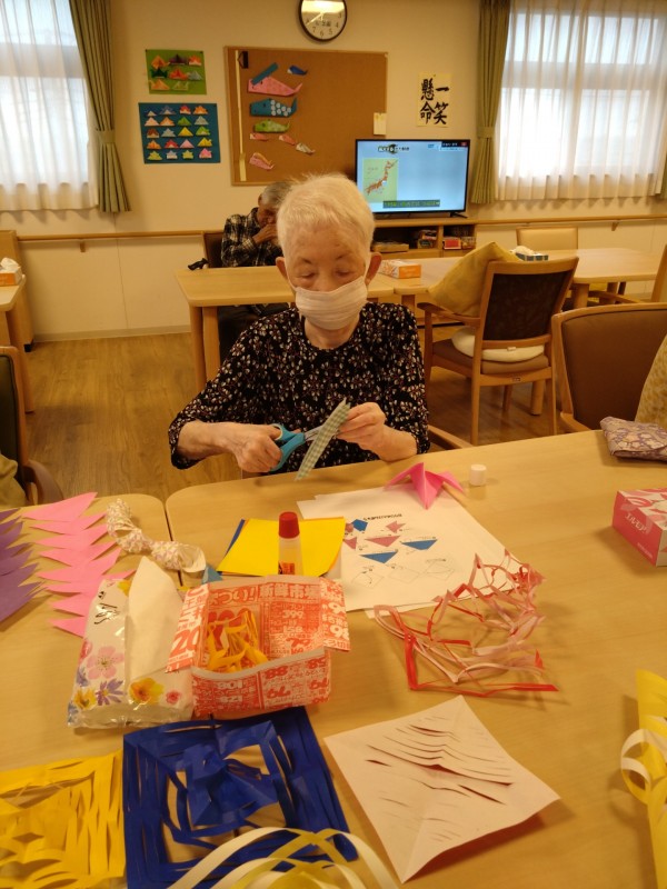 来月の七夕に向けて、飾りを作っています\(^o^)/