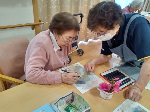 最近ホームでは脳トレの効果が期待できそうな「まちがい探し」がブームです!一見同じように見える2枚の並んだ絵の、何箇所か異なる部分を○で囲む作業です!絵を掲載できないのが残念ですが、図が細かいために難易度が高く集中されている時間が流れます…。楽しい脳トレのアイデアも随時募集中です♪