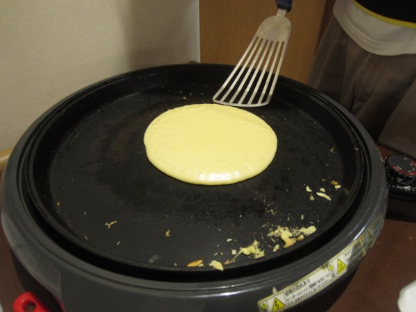 大きいホットケーキが出来ました。焼き具合もしっかり見ながら、一つ一つ一生懸命に作りました。