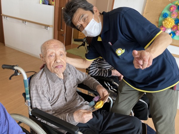 ホーム長が代表して、男性ご利用者様にプレゼントさせて頂きました!