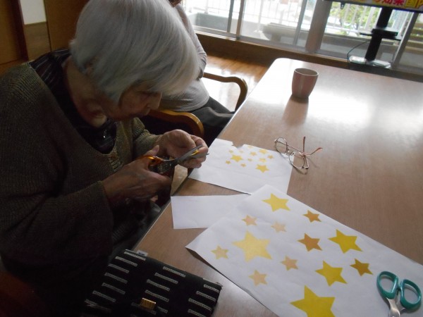 笹に皆さんの短冊と星などを飾り付けます。