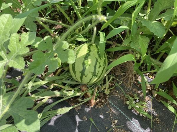 今年は畑で採れたスイカが食べられるか楽しみです。