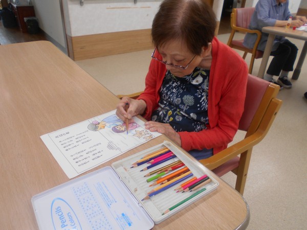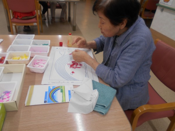 今回は貼り絵や塗り絵等の日常レクのご様子をご紹介致します(^^♪