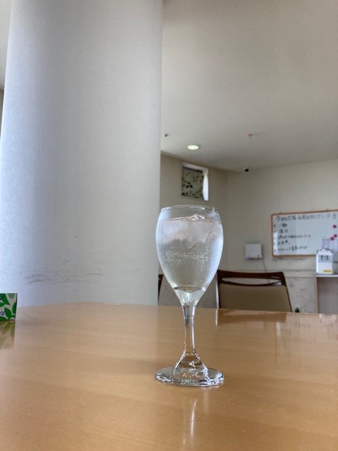 はい~( *´艸`)こ洒落たグラスで一杯どうぞ~(*^-^*)