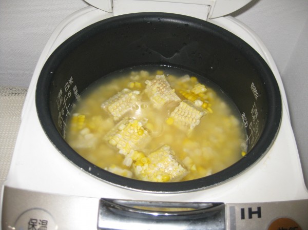 とうもろこしご飯の準備をして電気釜に入れたご様子です( ^ω^)・・・