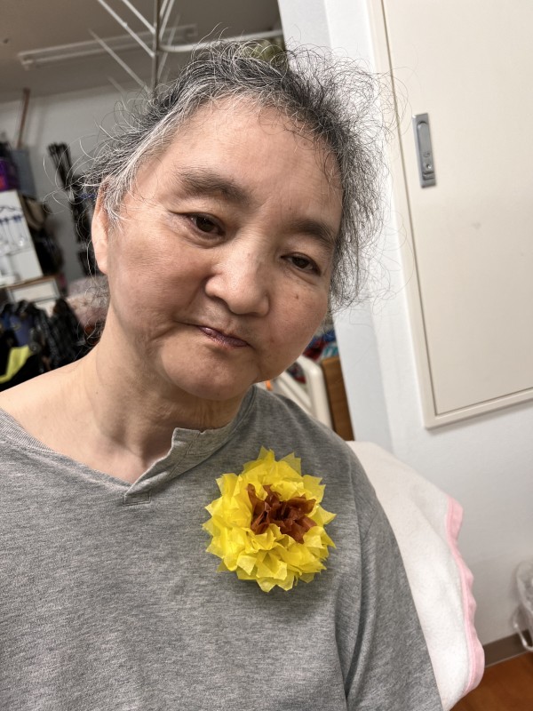 ひまわりをお花紙で再現して作り、部屋中に飾りました!