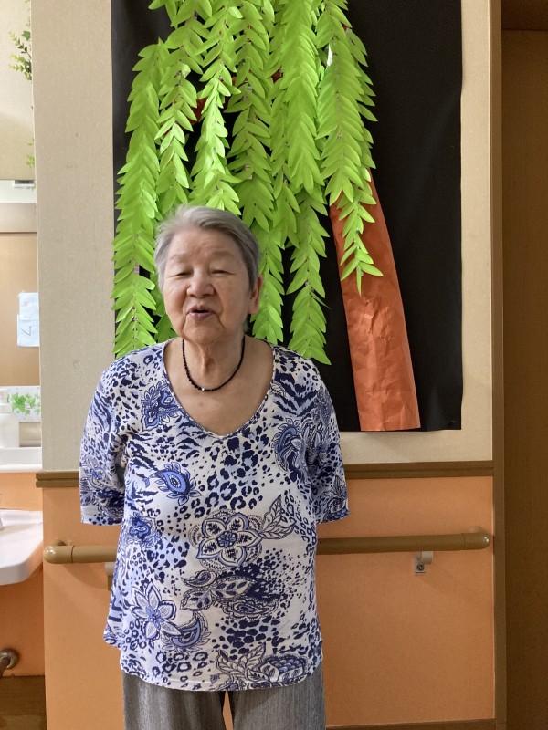 七夕の飾り付けが完成して、七夕の日に皆様と「ハイ、ポーズ‼」(^-^)