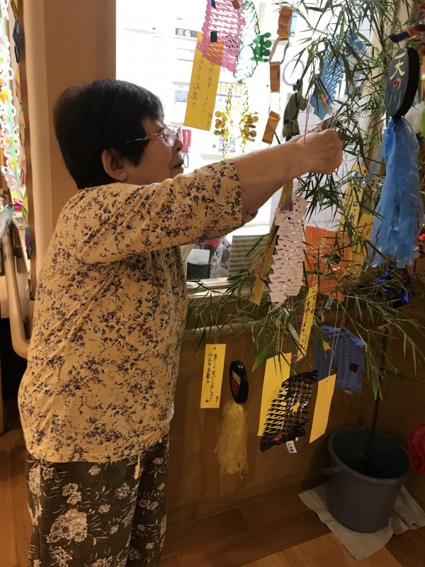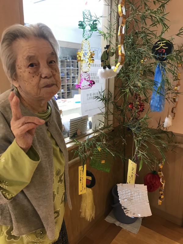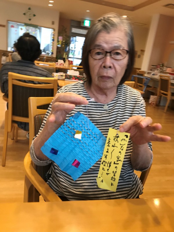 笹が届きましたので利用者様と一緒に願い事を書いてみました!