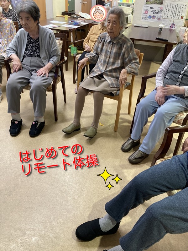 今日新しく入居されたご利用者様のはじめてリモート体操に参加された時のご様子をお伝え致します