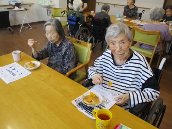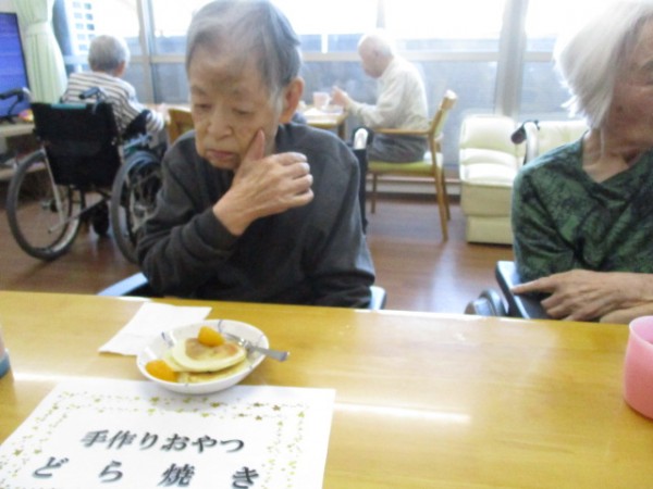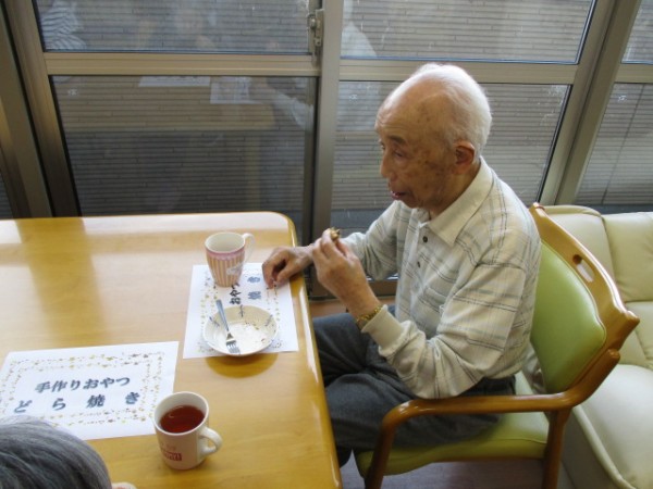 手作りどら焼きのおやつを召し上がられています( ^ω^)・・・ 今日のおやつは何かしら~? 美味しそうですね~?