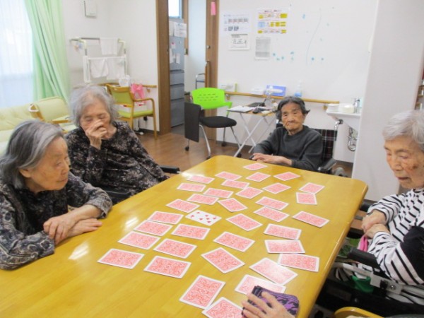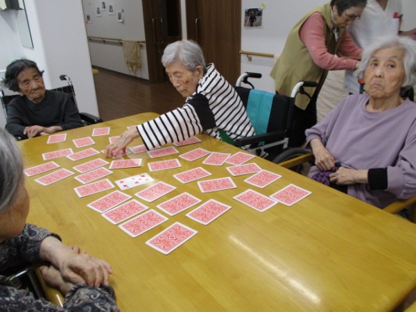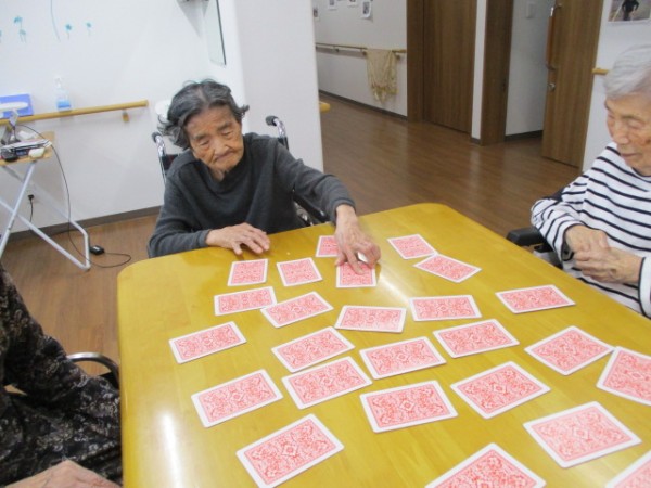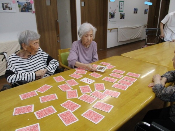 トランプ(神経朱雀)で遊びをしました( ^ω^)・・・ 私もやるわ?と仲間に入ってきました。 「中々合わないね?」とちょっと寂しそうでした( ノД`)シクシク… みなさま必死にカードを合わせようと頑張られていました。「難しいもんだね・・・///」と話されていました(^^♪