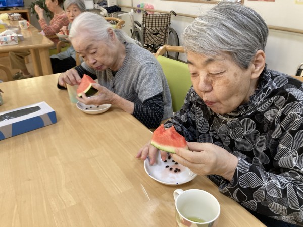 とある日のおやつにスイカが登場しました!
