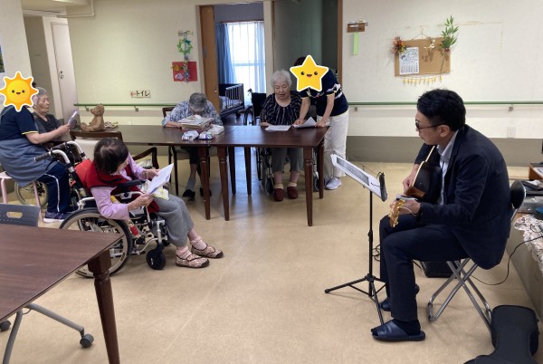 なんと、ボランティアの方が ギターの弾き語りに来てくださいました!