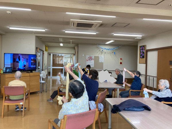 この日はリモートでタオル体操がありました。