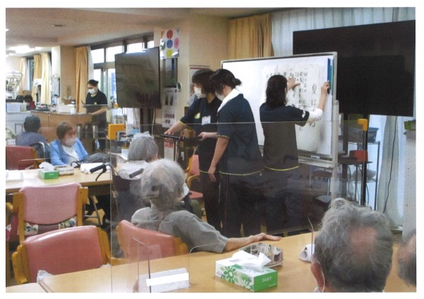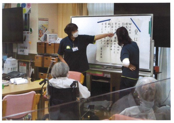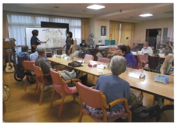 本日午後のレクリエーションは【歌声喫茶『順子』】職員によるピアノとギターの演奏で懐かしい曲を一緒に歌います。歌は好きだけどカラオケは苦手、という方も一緒に歌うのは気兼ねなく楽しめますね。今日も皆様で大合唱、音楽って心を豊かにしますね♪