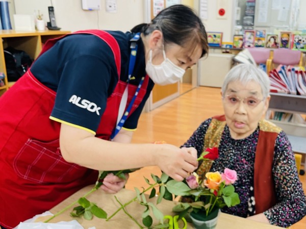 バラ、カーネーションなどお花のバリエーションも豊富で皆様喜んでおられました。