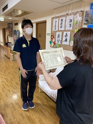 永年勤続 “五年表彰” を、7月18日にグループホームみんなの家・与野鈴谷の2階フロアで受けました。