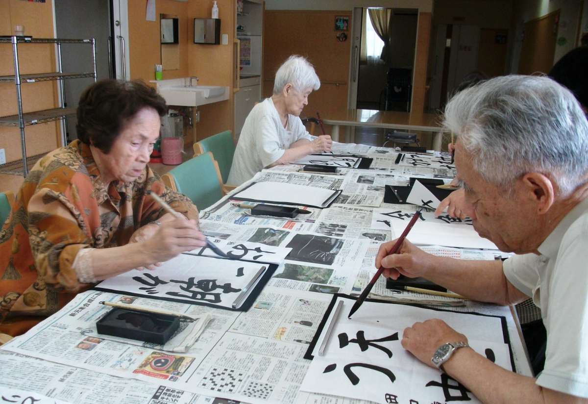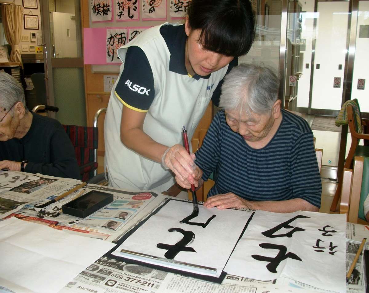 最近のレクレーションで盛り上がったのは、書道でした。