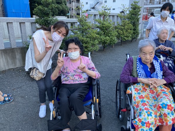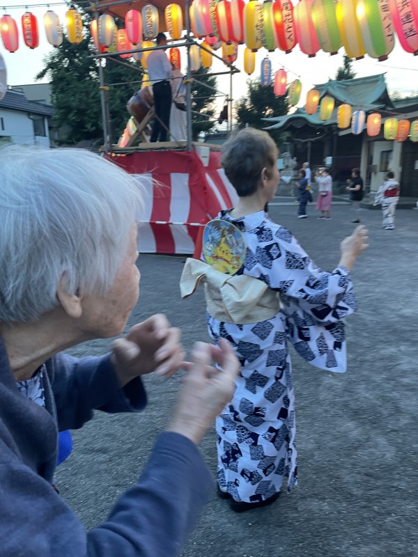 今は暑い日が続き、散歩には行けていませんが、夕方からの盆踊りは久しぶりのお散歩にもなりました。みんなで出掛けられる機会は貴重です。同じ楽しい時間を共有できることは大切ですね。