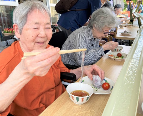 今年はおやつでは無く、昼食に流しそうめんを行うため