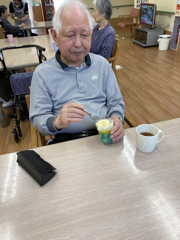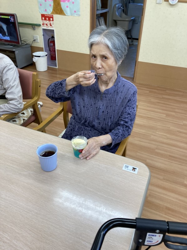 ケアスタッフの手作りで、ゼリーはシュワっと美味しいデザートでした。
