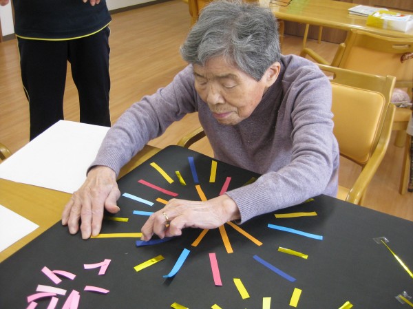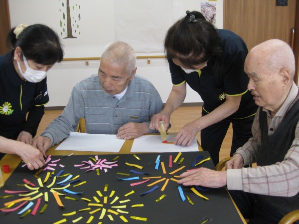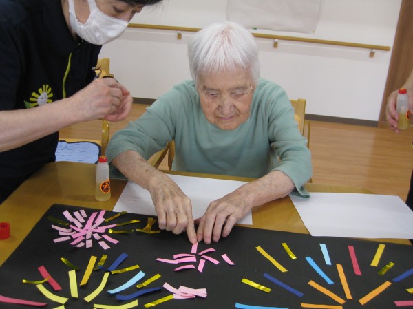 花火の貼り絵を行いました( ^ω^)・・・ 職員も一緒に貼っておられました!