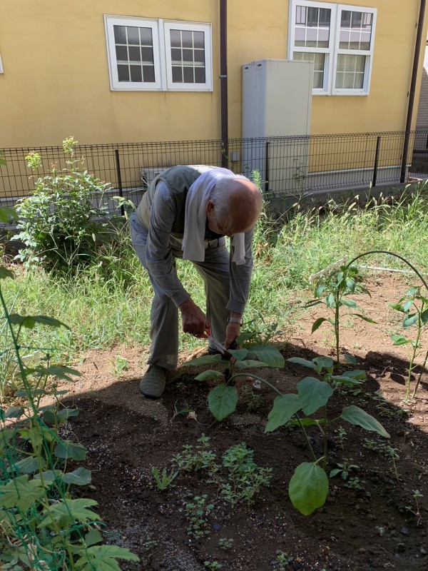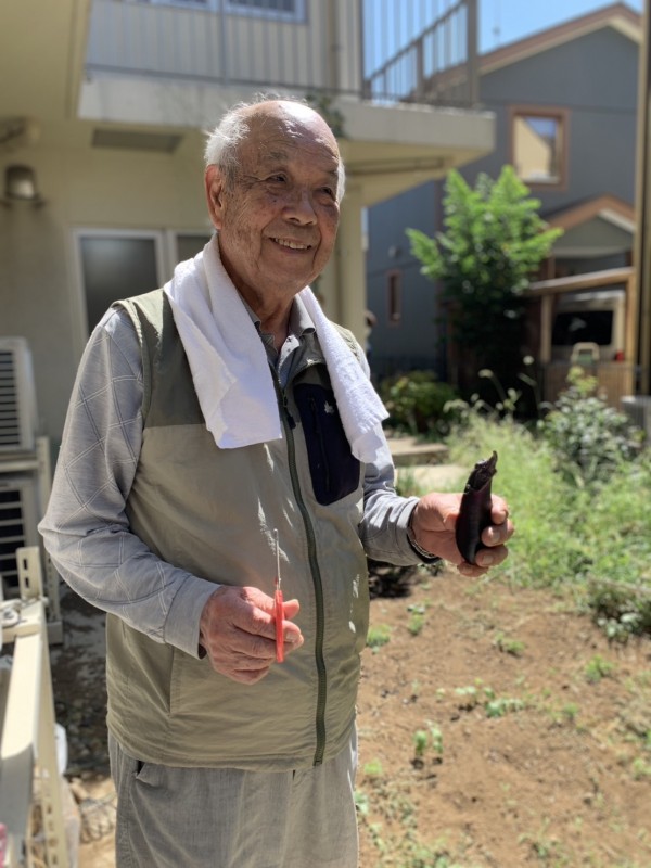 畑に一緒に行き大きくなった茄子を収穫していただきました^_^