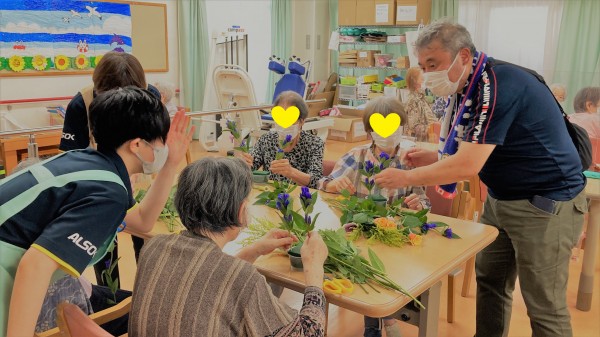 男性の先生が今回もしっかりと皆様に教えつつ、お花を作っていきます♪