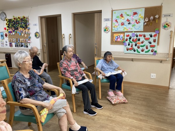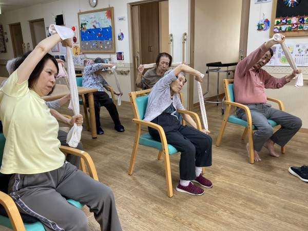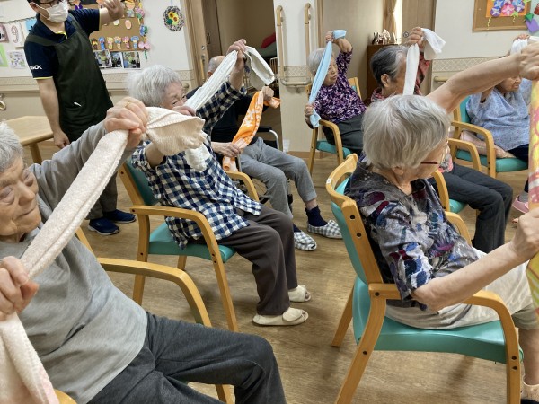 タオルを使って体を動かしました。