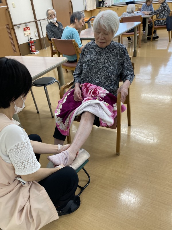 ご入居時にはパンパンだった足の浮腫が軽減し、靴のサイズが小さくなった方もいらっしゃいます。施術を受けている時の気持ちよさそうなご様子をみていると、
