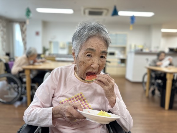 おやつですが、トマトとスイカをセットにしました(*^^)v