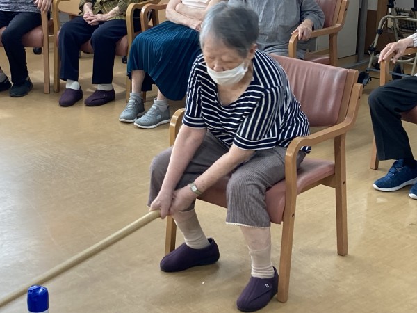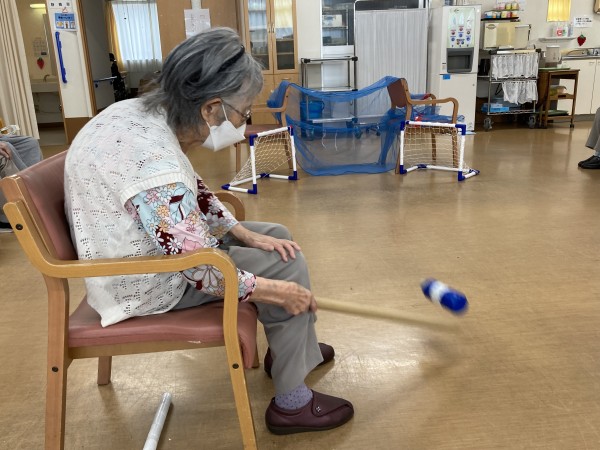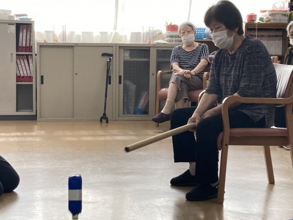 今日のレクリエーションは、ボトルホッケーでした。