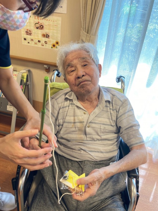 魚おやつ釣りとは、職員が作った、段ボールの生け簀に、