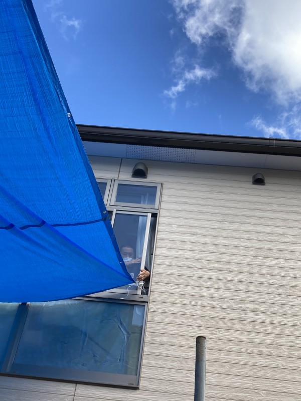 テラスの日差しを程よく避けるためブルーシートの屋根作り!!