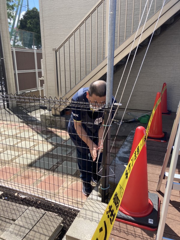 まずは飯田北Ⅰ、Ⅱの間にあるテラスに職員集合!!