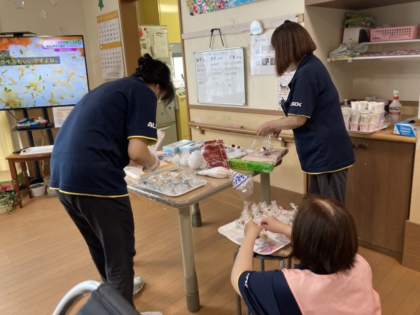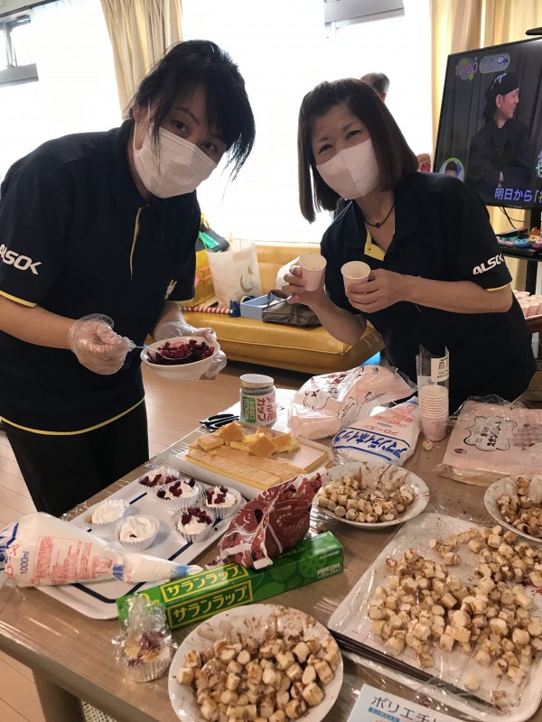 準備をしている傍ら、ALSOK介護株式会社の社長がホームにいらしてくださりました!