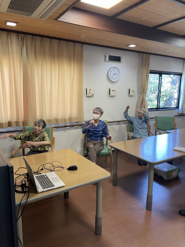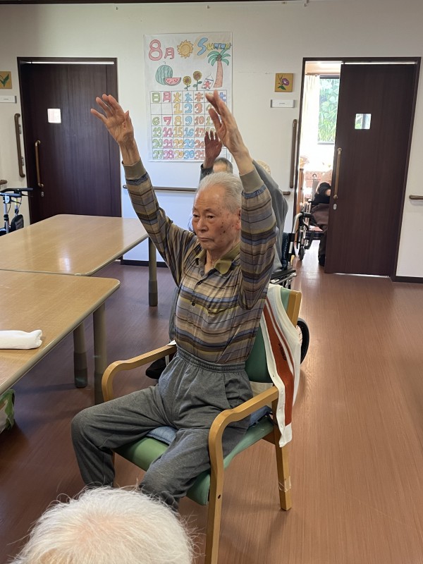 まさに夏祭りと言った雰囲気で、入居者様も張り切って体操に参加されています。