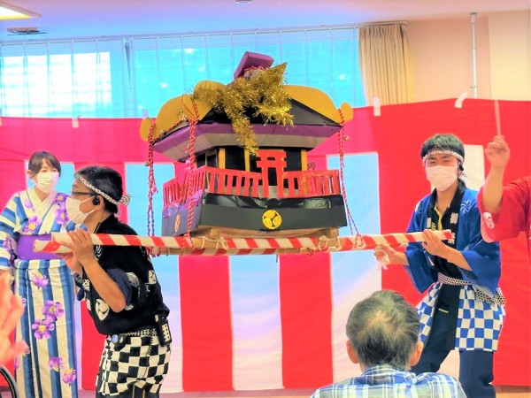 お神輿や盆踊り、フラダンスを全員で楽しみました(´っ・ω・)っ
