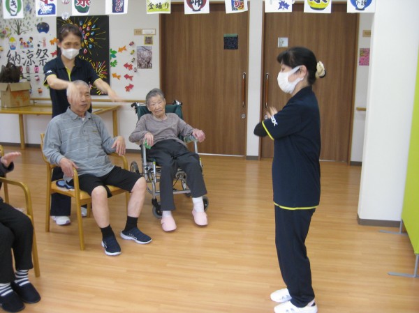 職員さんも一緒に踊っています。 さすが職員さん、上手ですね(*- -)(*_ _)ペコリ