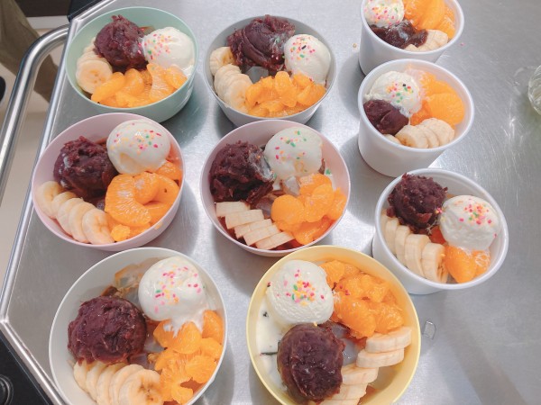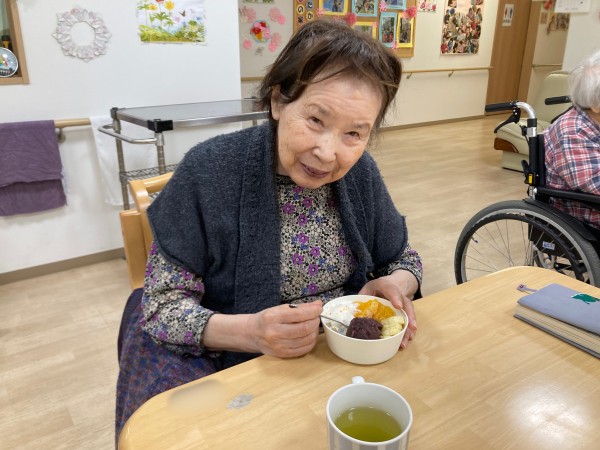 職員手作りのクリームあんみつでお祝いさせて頂きました。