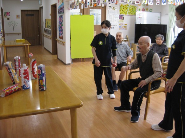 的あてゲームに参加され楽しまれていました。中々当たらないね! と、必死になり頑張っていました(*^_^*)