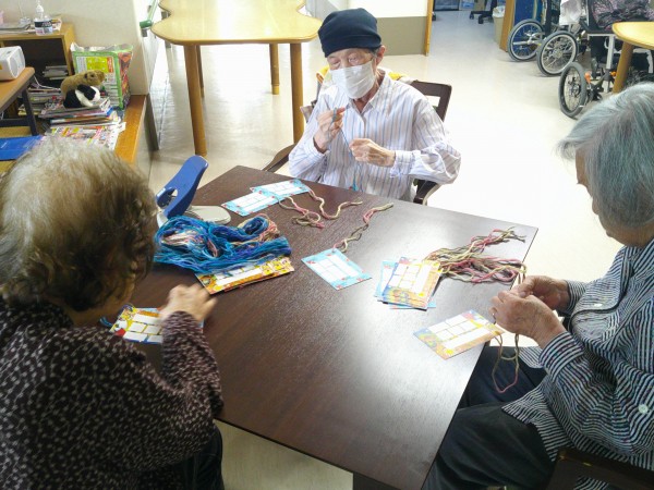 その 納涼祭 で使うカードをご入居者様と一緒に