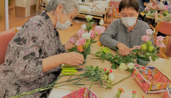 さて本日の遊蓮田は、すっかり定番となった1カ月に一度行われる「フラワーアレンジメント」のご紹介となります!