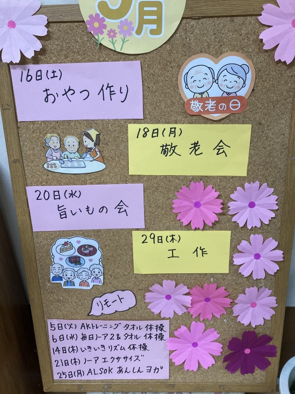 9月のレクリエーションカレンダーのご紹介です。