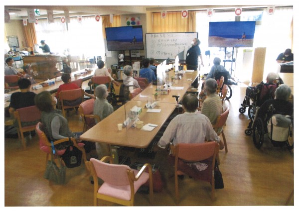 椅子に座ったまま、カウントをかけながら運動することにより、脳の血流が良くなるというエクササイズ。柴田職員の元気な声に自然と身体が動いてしまいますね。しっかりと運動した後は冷たい麦茶が体と喉にしみわたります。