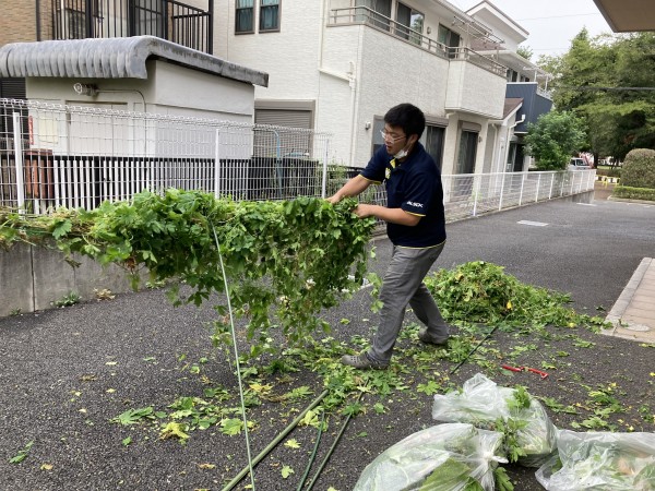 ゴーヤを撤去です!(ちなみに今年は17個ほどのゴーヤができました。)