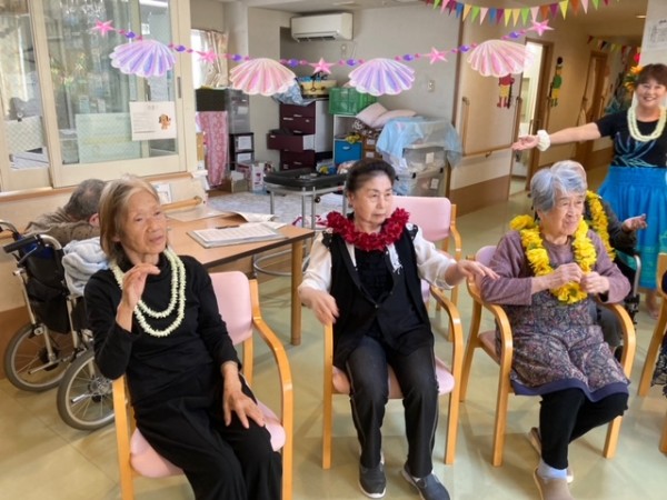 フラダンス教室に参加をしました。インストラクターに習いイキイキと