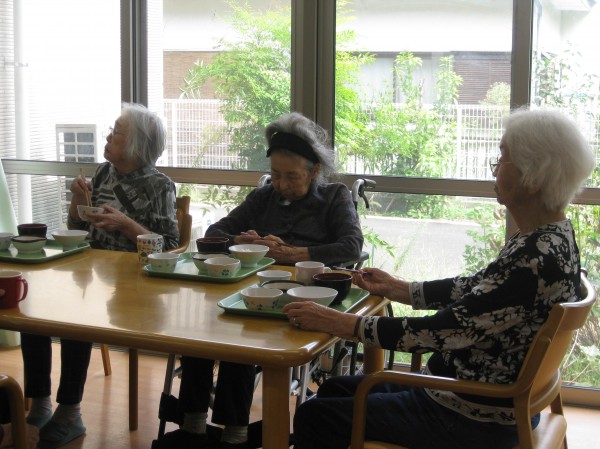 こんにちは! グループホームみんなの家・あきがせの介護ブログです! よろしくお願いいたします! 今日は昼食を召し上がられているご様子をお知らせいたします!